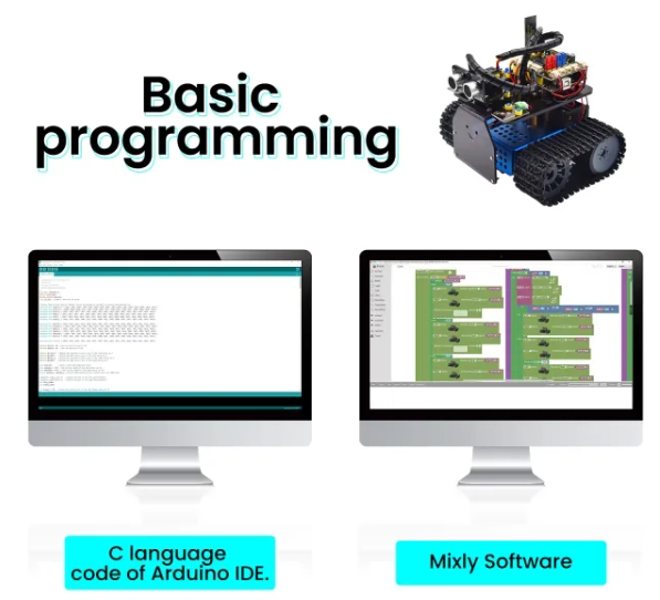 This robot helps you learn multiple robotics functions like light following, line tracking, IR and BT remote control, speed adjustment and so on.