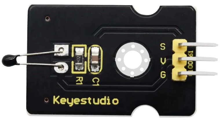It is a thermistor based principle where resistance varies with temperature change in the environment. It measures change in the surrounding and sends the data to the analog MCU pin.